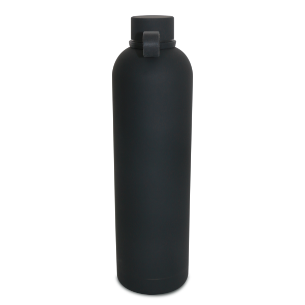 Thermos bouteille isotherme 1000 ml en inox avec finition soft-touch et anse intégrée pour un transport facile. Double paroi pour une conservation optimale de la température.