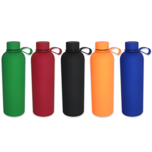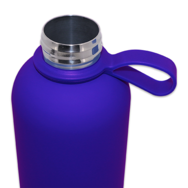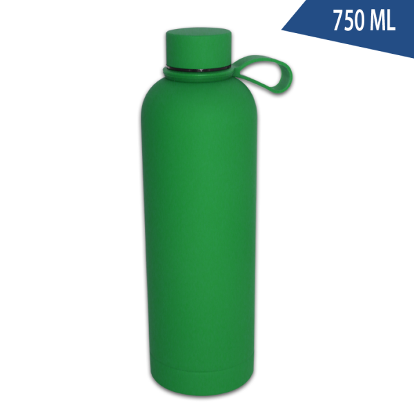 Thermos bouteille isotherme de 750 ml en Inox avec finition soft-touch à l’extérieur et anse pratique pour faciliter le transport.