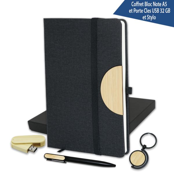 Coffret Bloc note, porte-clés, USB 32GB et stylo inclus