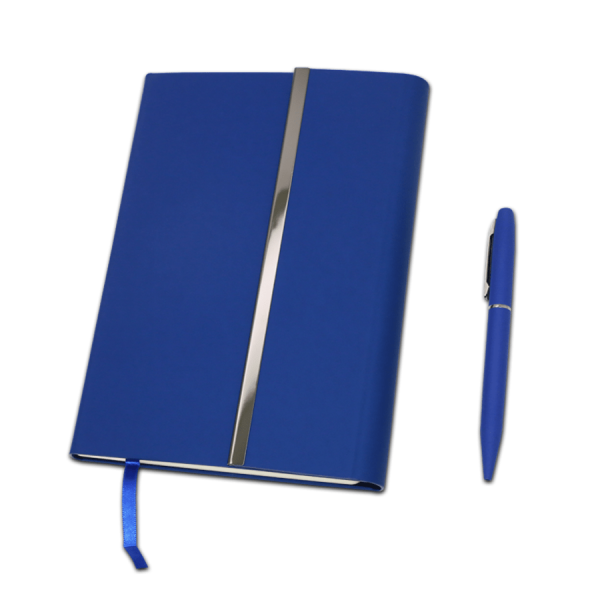 - Un Note book en similicuir effet soft-touch / intérieur 100 Feuilles A5 surlignée couleur crème avec des pages informations et porte stylo