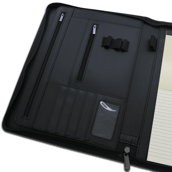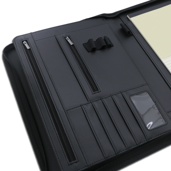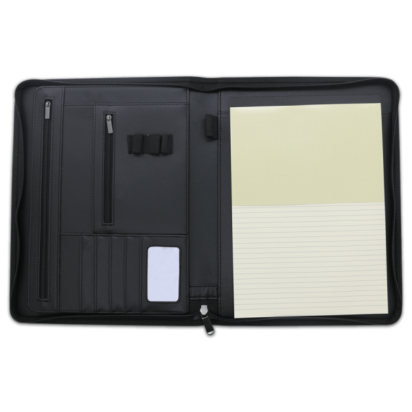 • Bloc inclus : Bloc de feuilles A4 surlignées, avec compartiments de rangement pour documents et cartes