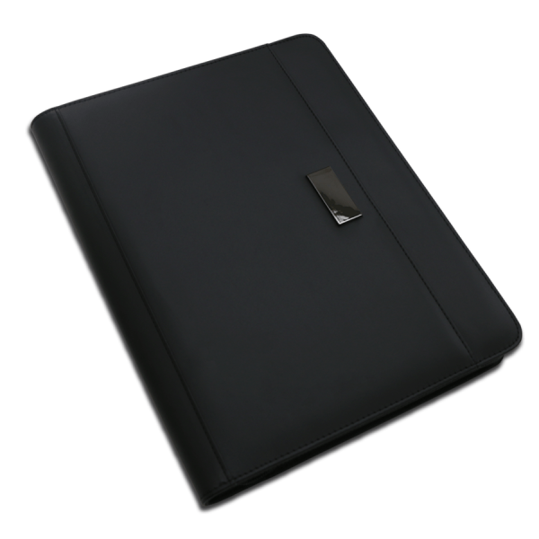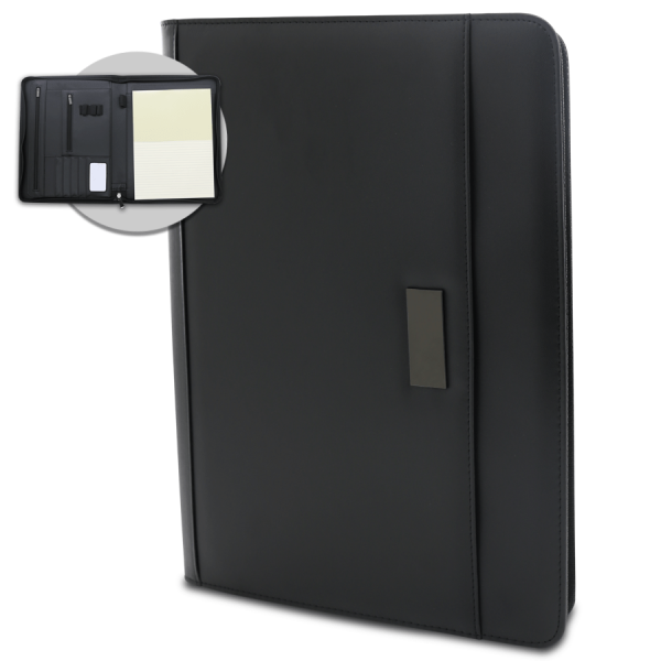 • Détails : Conférencier A4 en similicuir avec plaque métallique