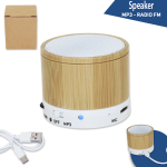 • Détails : Haut-Parleur Bluetooth sans fil en plastique et bambou forme cube avec câbles inclus