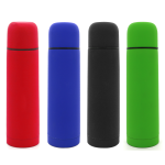 Mug isotherme de haute qualité avec corps en inox et finition soft-touch colorée pour une prise en main confortable.