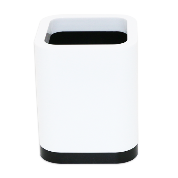 - Détails : Pot à crayon en plastique avec corps blanc et socle noir, idéal pour la personnalisation