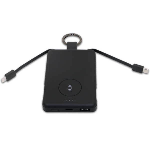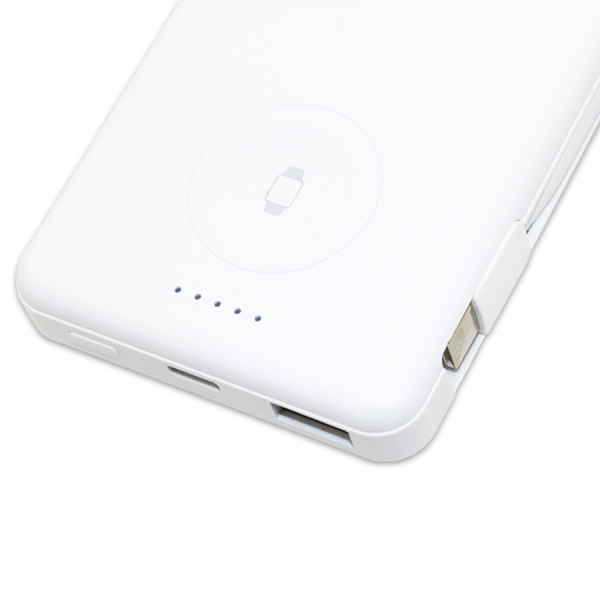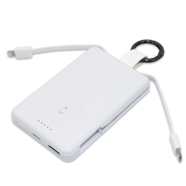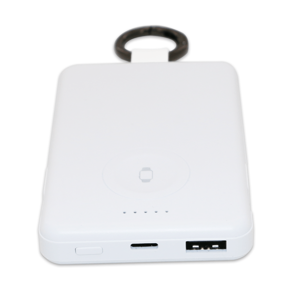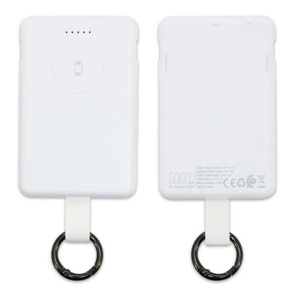 Power-bank compact de 5000 Mah spécialement conçu pour la recharge des smartphones et montres Apple Watch. Pratique et léger, il est livré avec un multicâble intégré ainsi qu’un crochet pour un transport facile. Idéal pour un usage quotidien, en voyage ou en déplacement professionnel.