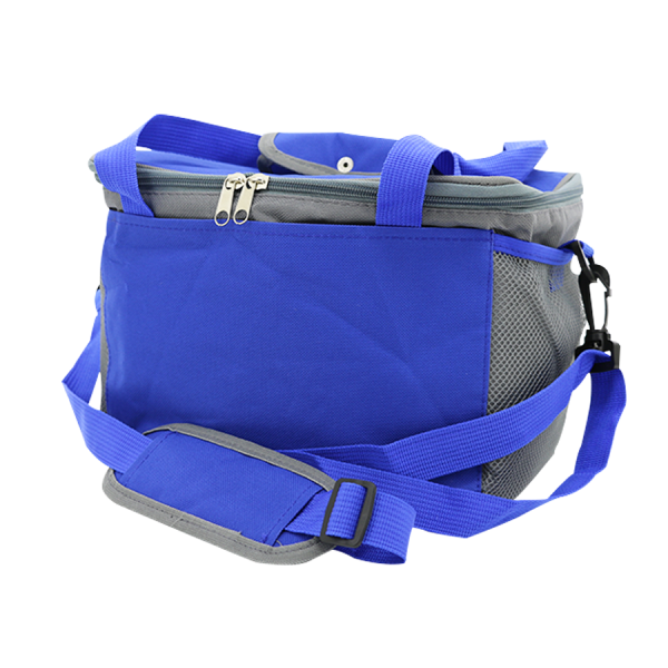 Sac glacière isotherme design en bleu et gris, pratique et fonctionnel pour conserver vos boissons et aliments au frais ou au chaud lors de vos déplacements. Il est équipé d’une bandoulière réglable pour un transport confortable ainsi que de poches extérieures avec fermetures éclair pour un rangement supplémentaire. Idéal pour les pique-niques, voyages, travail ou activités outdoor.