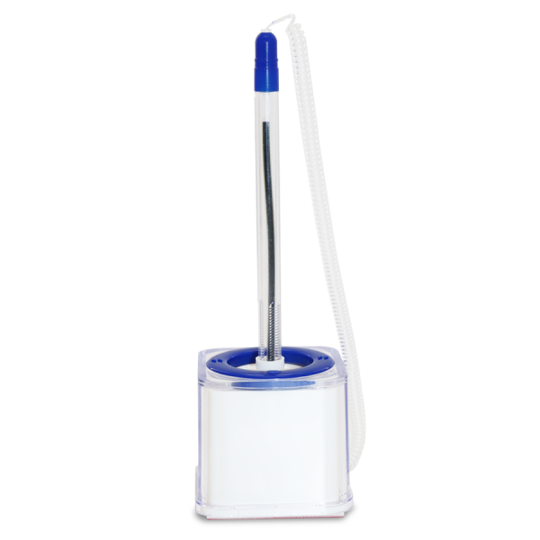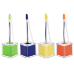 Stylo comptoir en forme carré en plastique avec touche coloré avec adhésif de fixation en bas pour les bureaux ou comptoirs