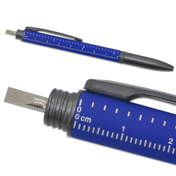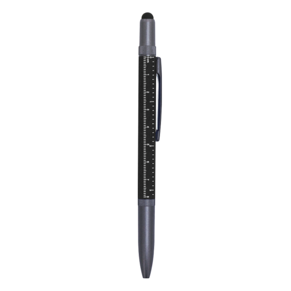 • Description : Stylus à bille en aluminium corps coloré avec attributs en gris avec tournevis, pointeur tactile et règle de 8 cm et 3 pouces