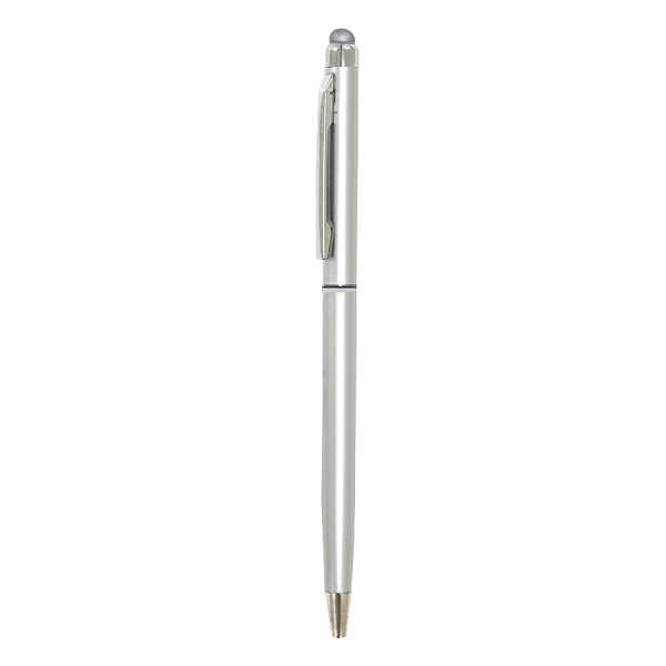 - Description : Stylus promotionnel à bille en plastique corps fin coloré effet métal.