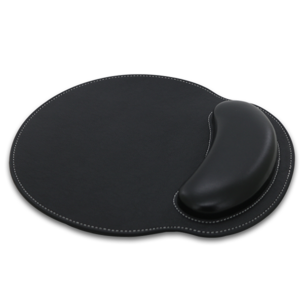 • Détails : Tapis de souris en similicuir noir avec repose-poignet ergonomique et bords cousus