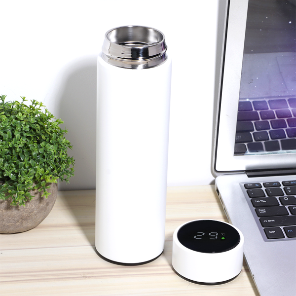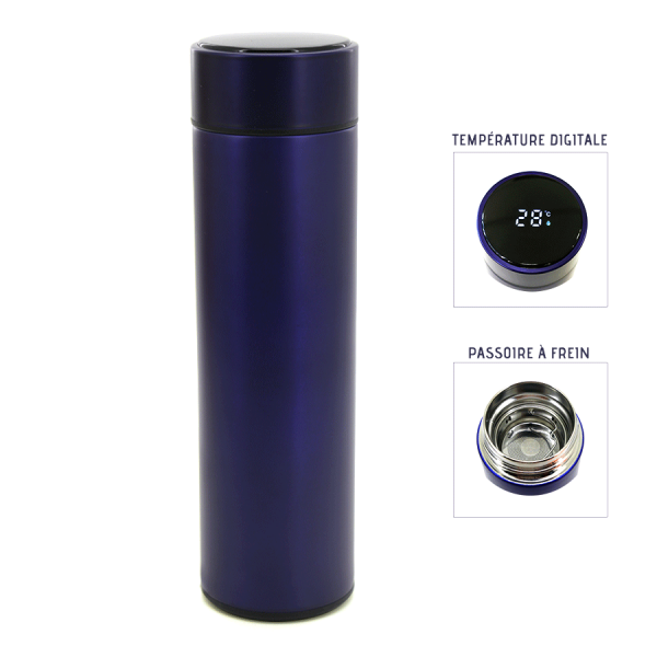 Thermos isotherme publicitaire avec afficheur de température digital sur le couvercle.